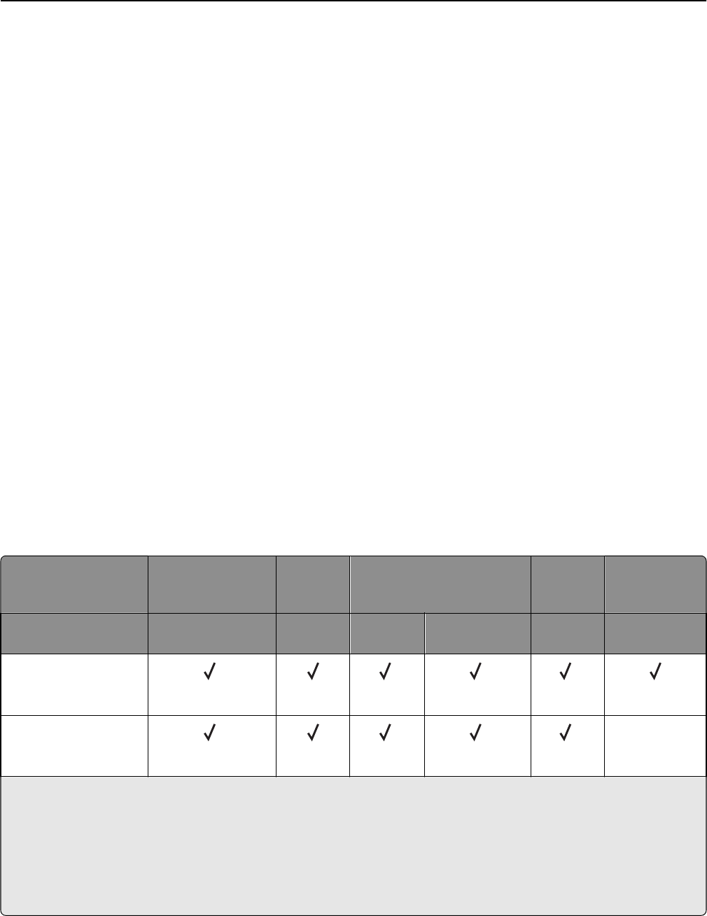 In de volgende tabellen vindt u informatie over standaardladen en optionele papierbronnen en over de papierformaten,