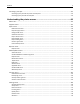 Contents 2 Contents Safety information.....................................................................................10 Learning about the printer.........................................................................12 Finding information about the printer....................................................................................................12 Selecting a location for the printer..........................................................................................................