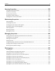 Contents 2 Contents Safety information.......................................................................................6 Learning about the printer...........................................................................8 Finding information about the printer......................................................................................................8 Selecting a location for the printer.......................................................................................................