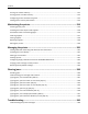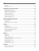 Contents 2 Contents Safety information.......................................................................................7 Learning about the printer...........................................................................9 Finding information about the printer......................................................................................................9 Selecting a location for the printer.......................................................................................................