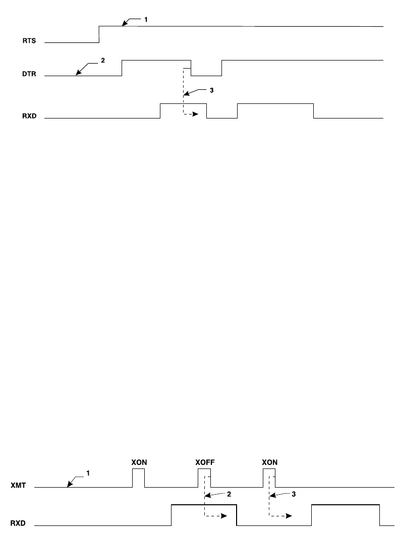 The following diagram illustrates XON/XOFF Protocol Timing.