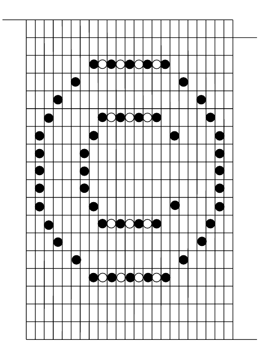 Solid dots indicate downloaded and printed dots. Hollow dots indicate dots