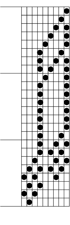 This example shows the design for the two-sixteenth note character (ASCII 14)