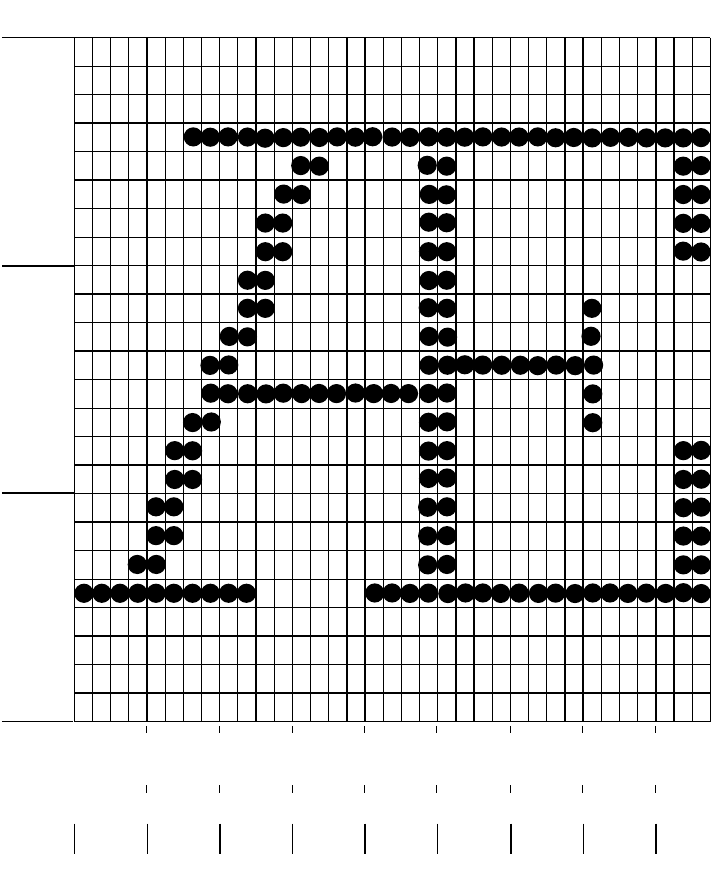 To design a character, start with a 35 dot wide by 24 dot high grid. Although the