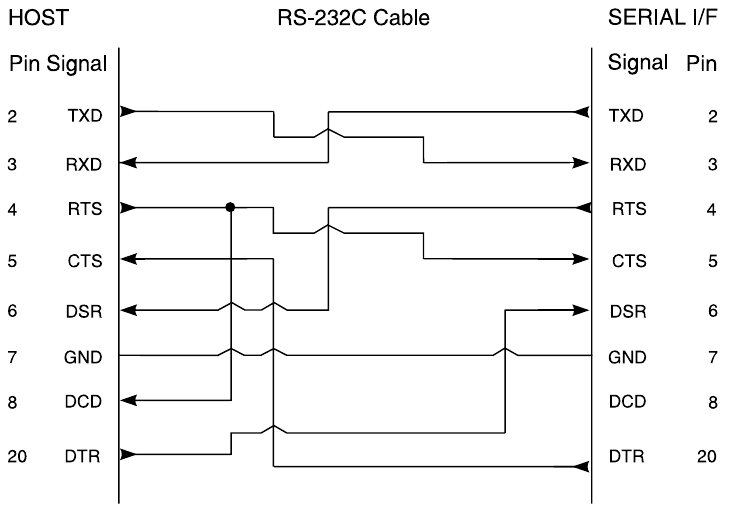 The recommended RS-232C serial cable is 50 feet long. This cable works with