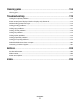 Clearing jams...................................................................................159 Clearing jams......................................................................................................................................................................159 Troubleshooting.............................................................................174 Solving basic printer problems......................................................................................................