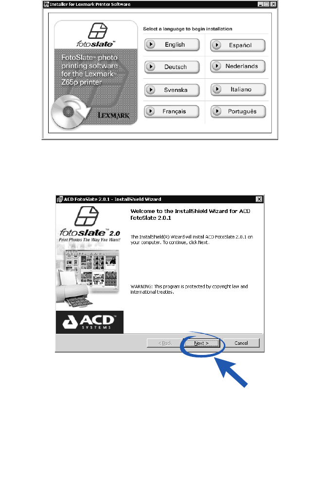 4 Wait for the ACD FotoSlate InstallShield Wizard screen to appear,