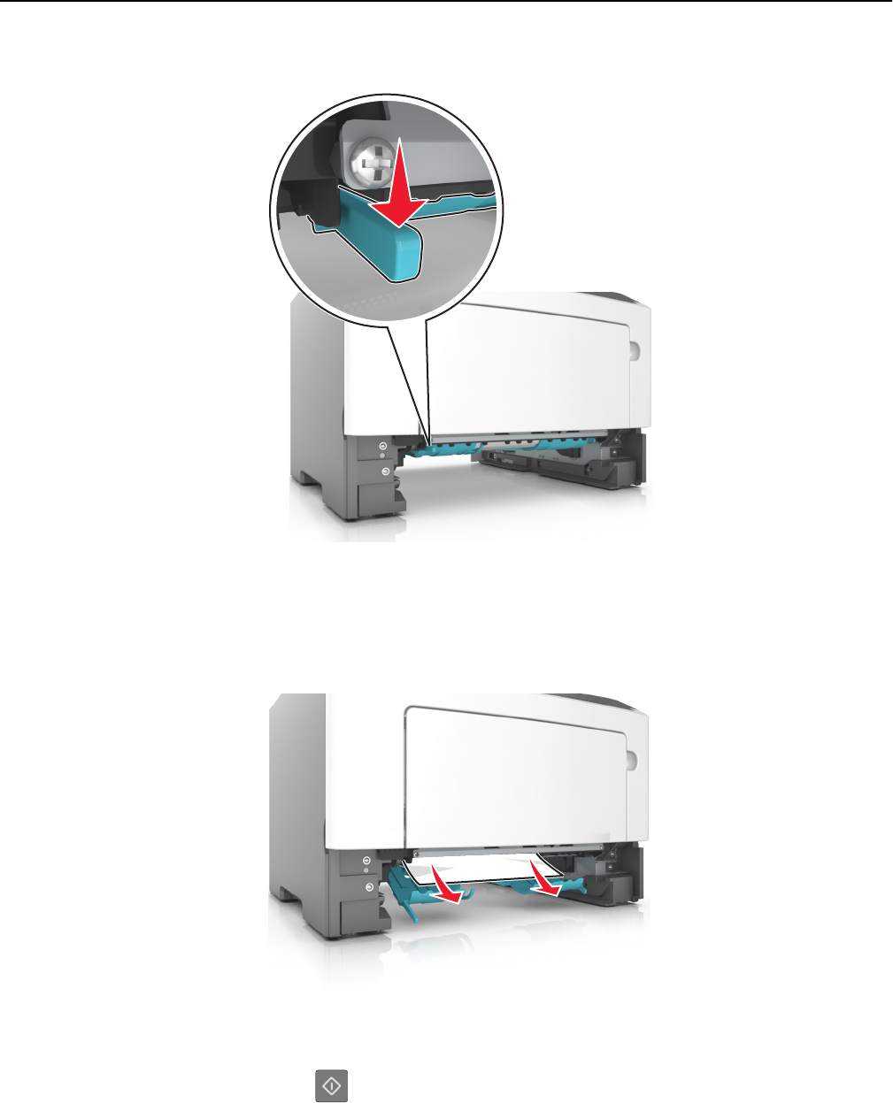 Note: If the jammed paper is not visible in the duplex area, then open the rear door, and then gently remove the