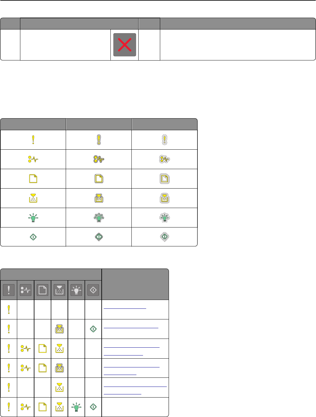blinking, or blinking slowly, indicating a printer status, a warning, or an error. Some errors have the same light sequence.