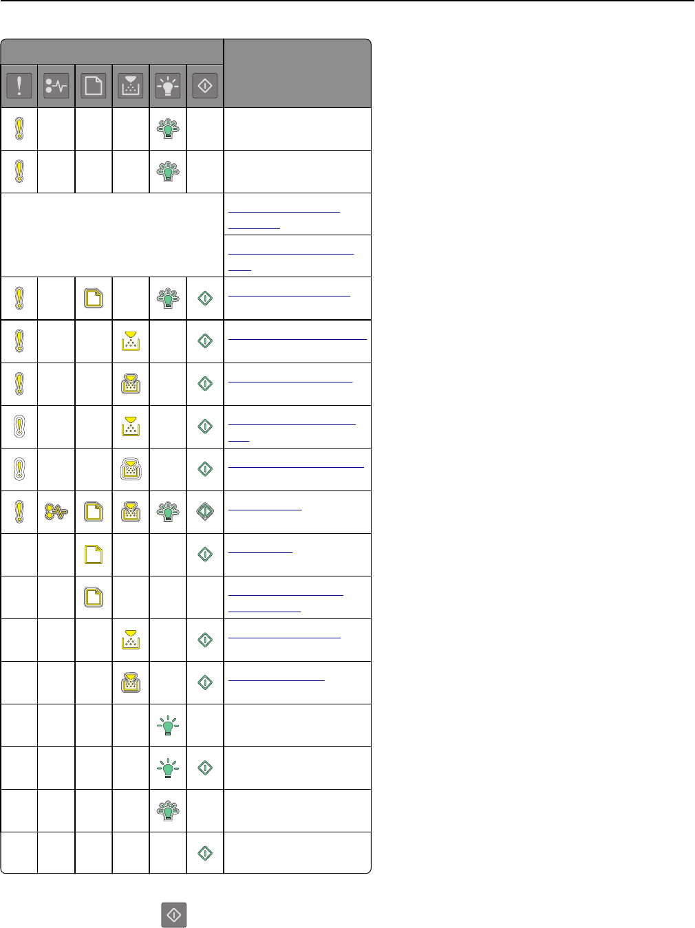 If the printer control panel light sequence matches a light sequence in the “Primary light sequence” column of the