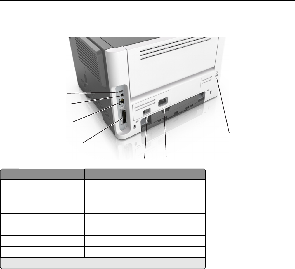6 Printer power cord socket Connect the printer to an electrical outlet.