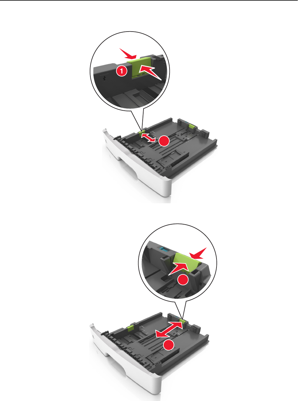 3 Squeeze and then slide the length guide tab to the correct position for the size of the paper you are loading.