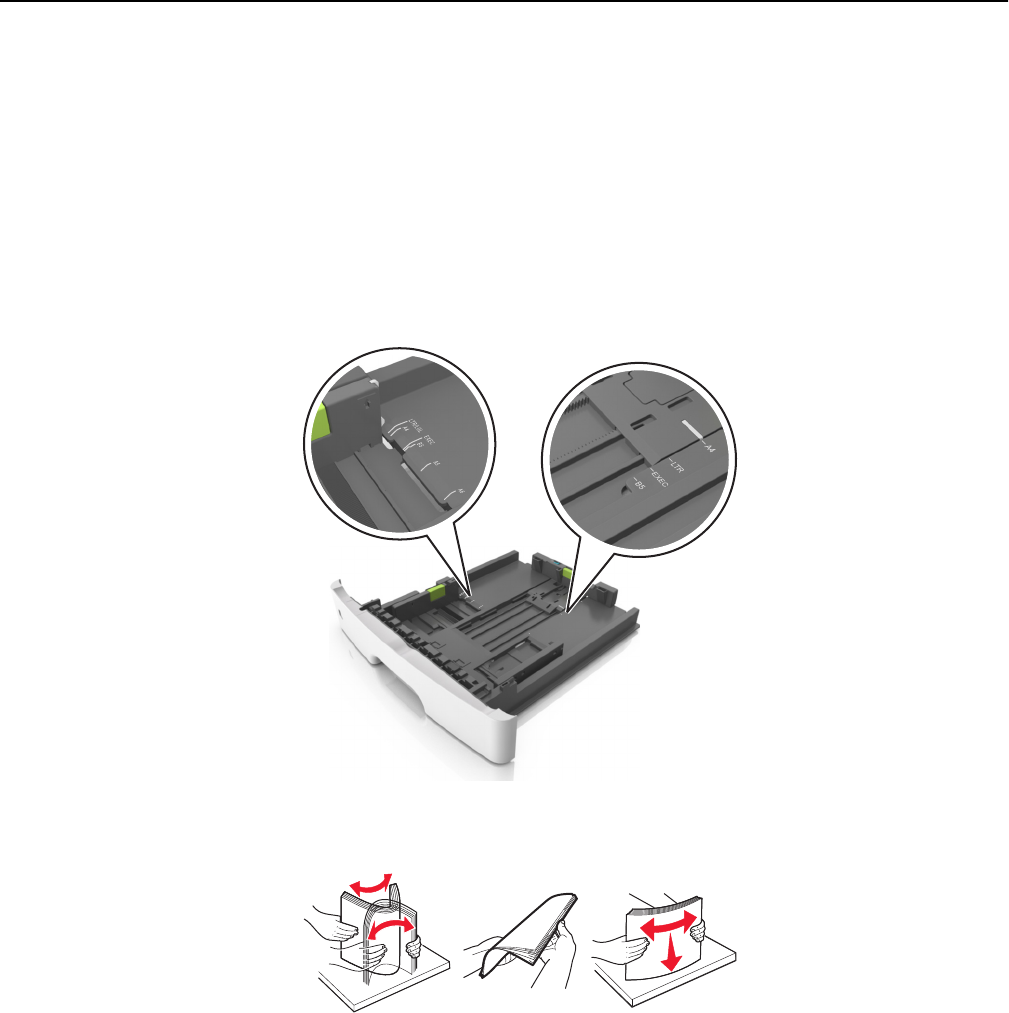 • Make sure the width and length guides are aligned with the paper size indicators on the bottom of the tray.