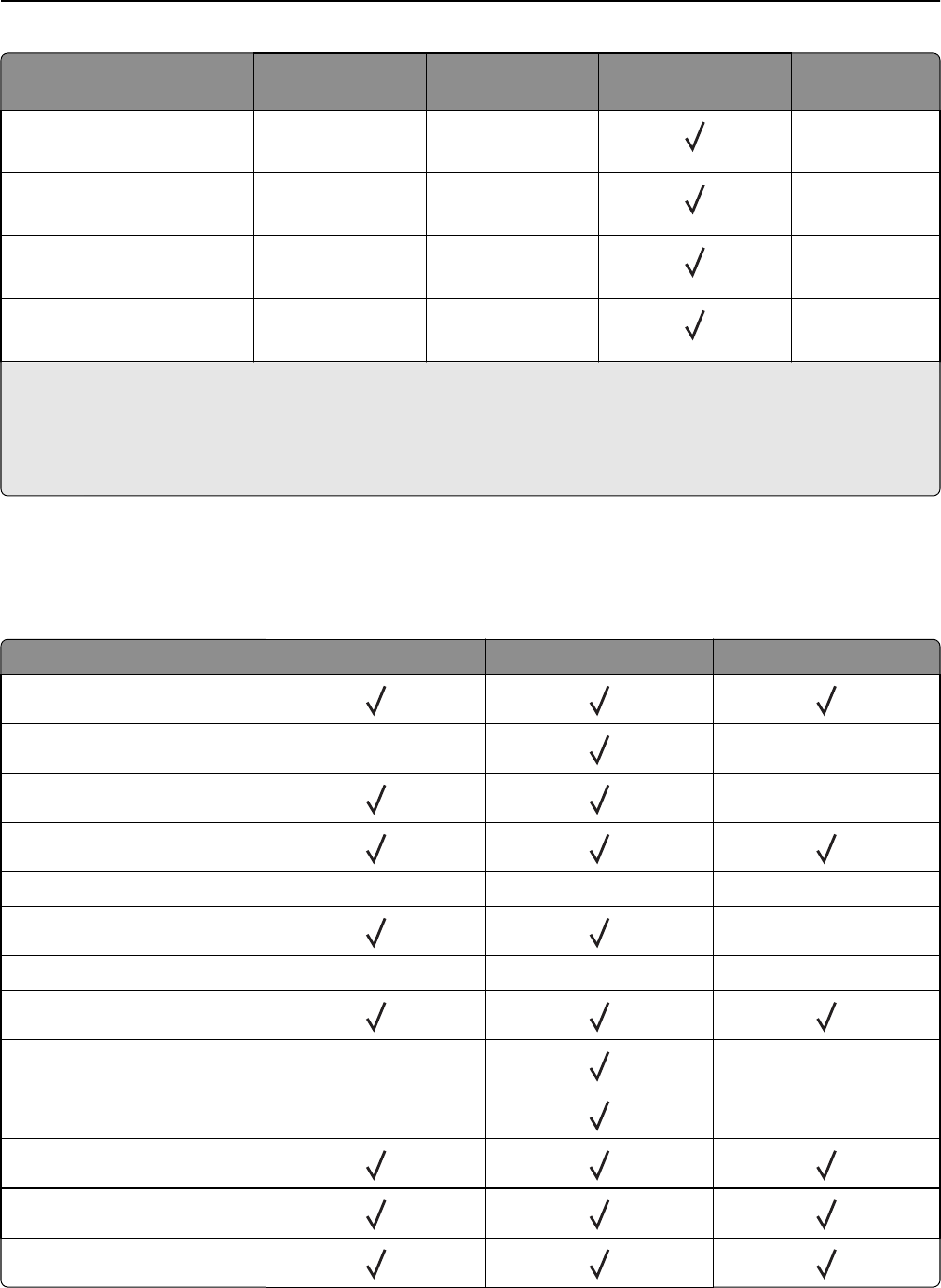 Paper type 250‑ or 550‑sheet tray Multipurpose feeder Duplex mode