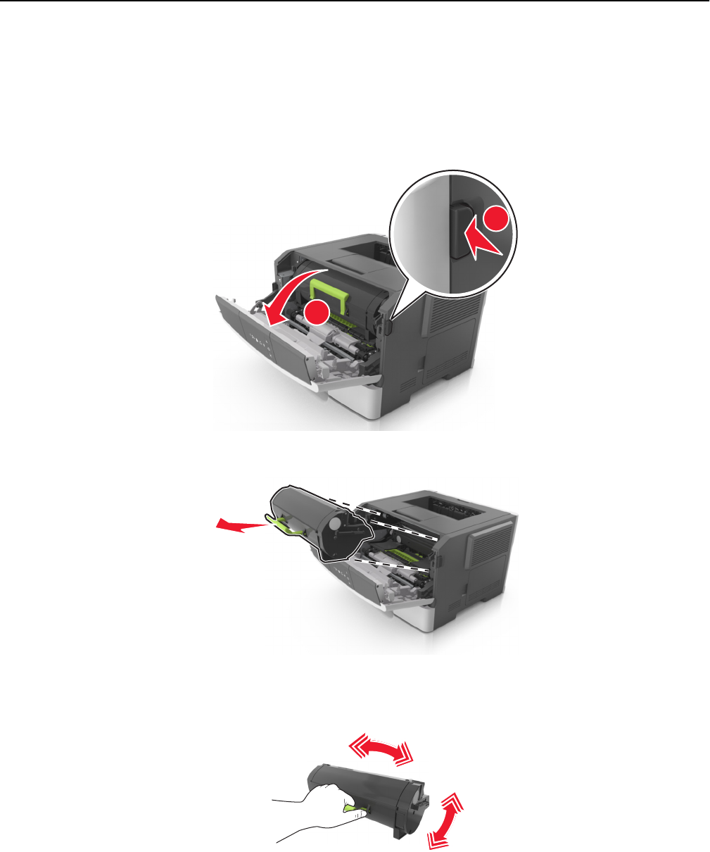 4 Shake the new cartridge to redistribute the toner.