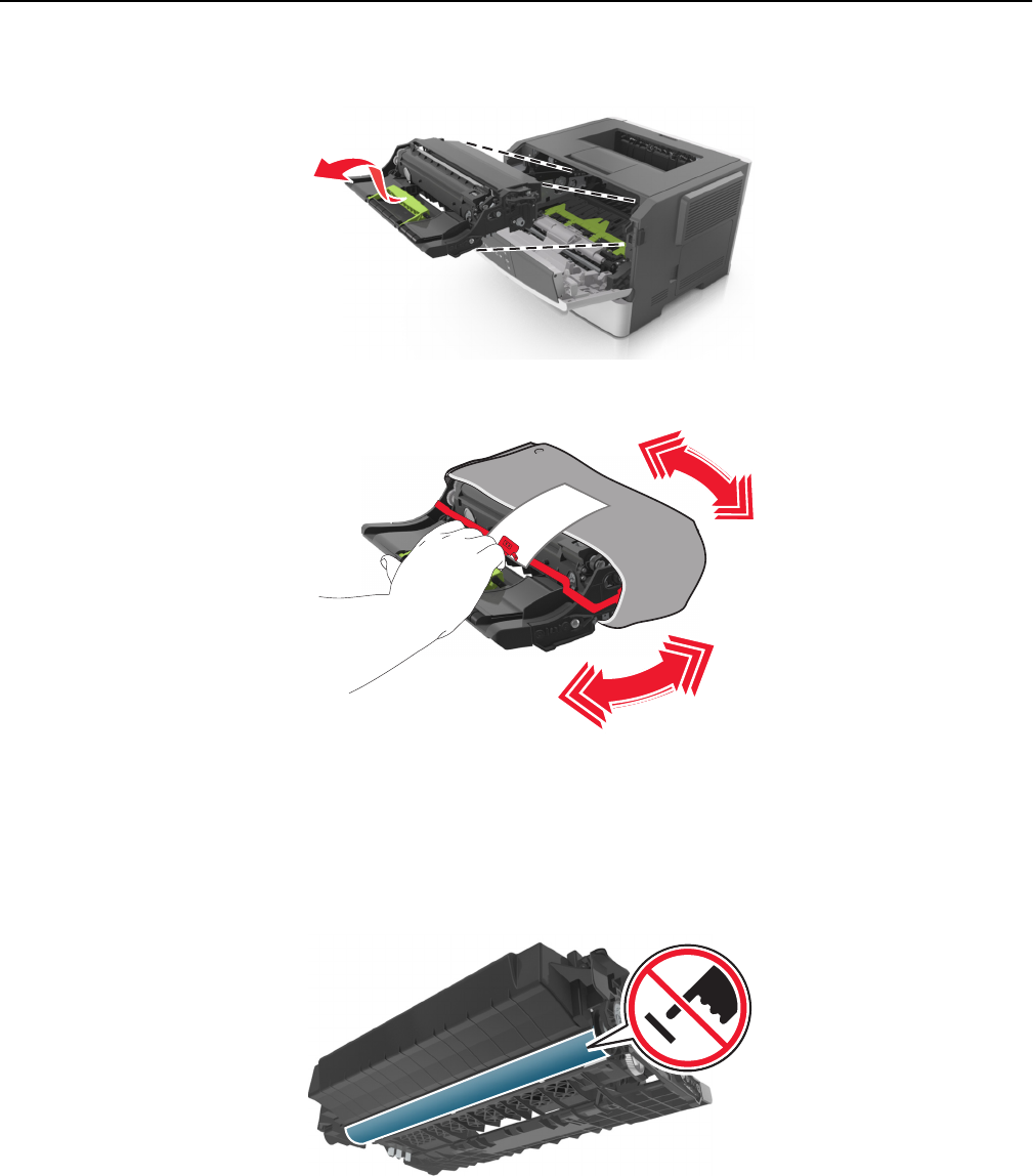 Warning—Potential Damage: Do not touch the photoconductor drum. Doing so may affect the print quality of