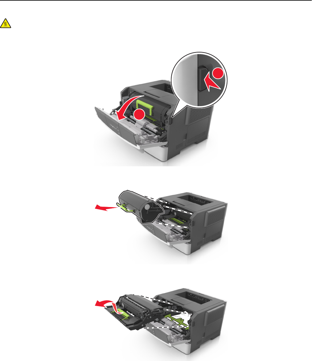 Warning—Potential Damage: Do not touch the photoconductor drum. Doing so may affect the print quality of