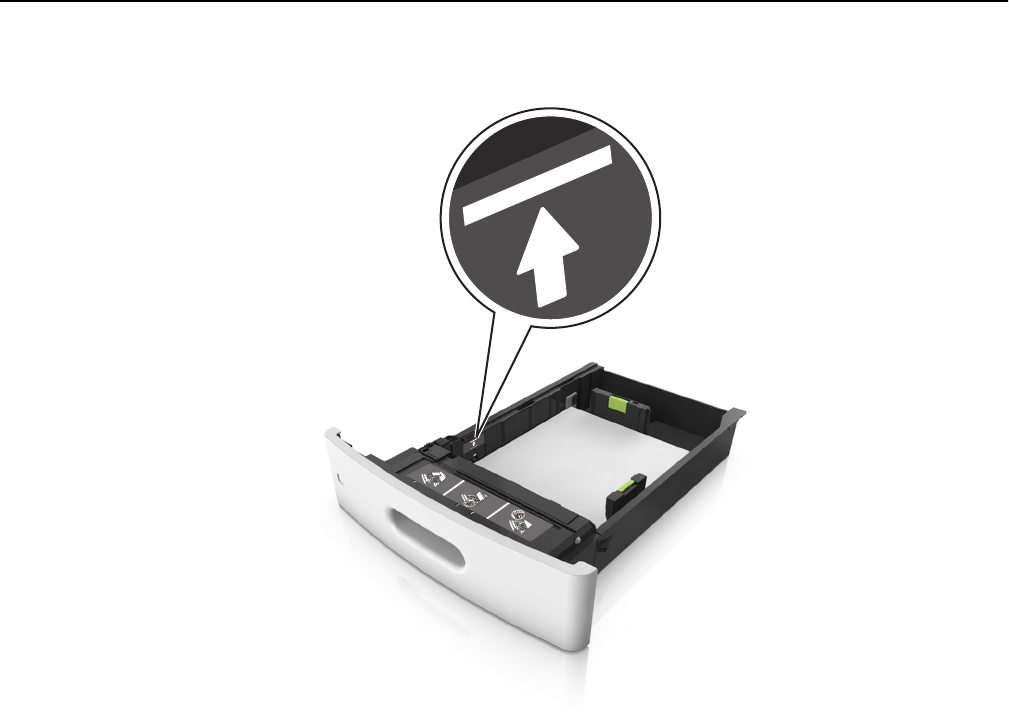 Make sure the paper is below the solid line, which is the maximum paper fill indicator.