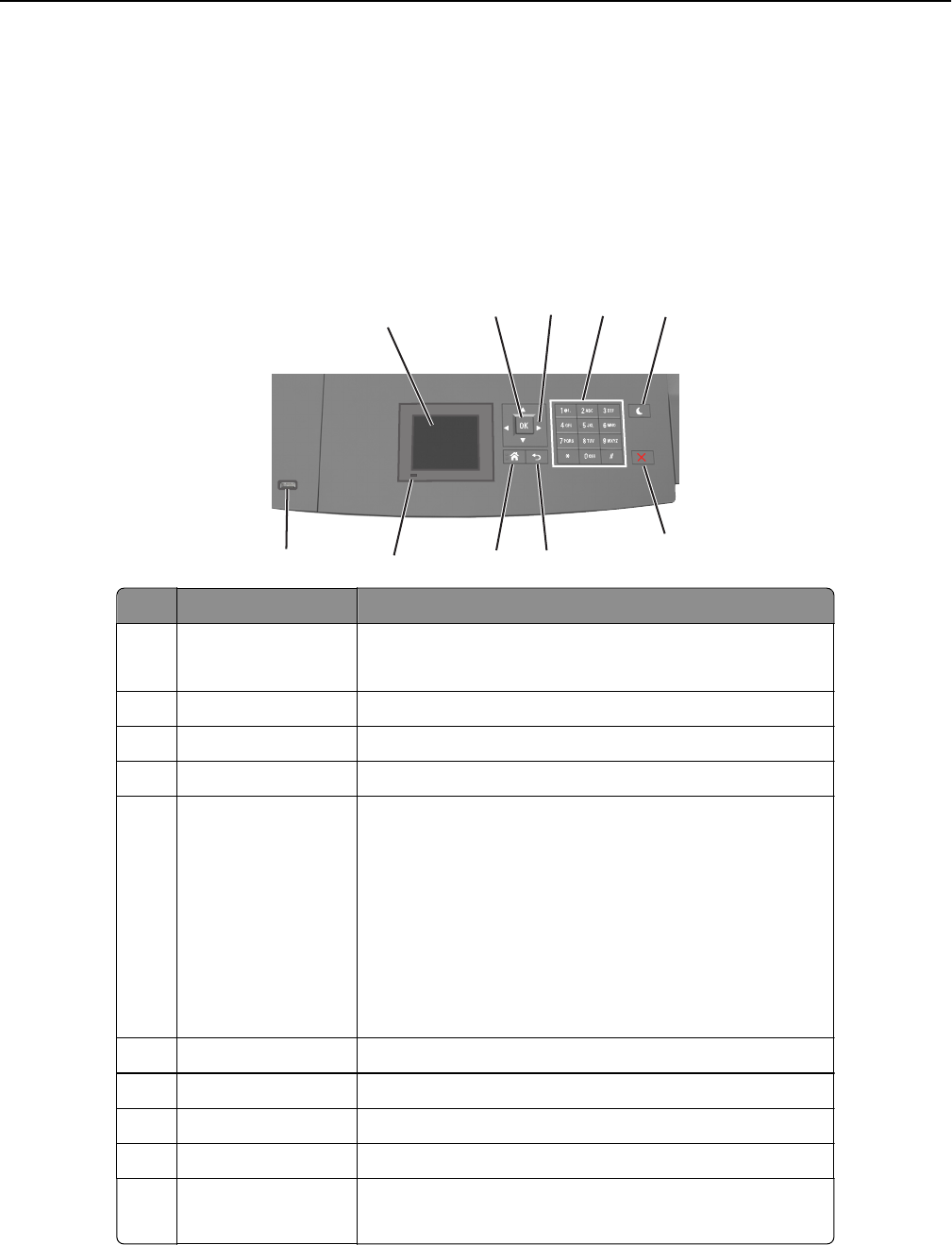 6 Stop or Cancel button Stop all printer activity.