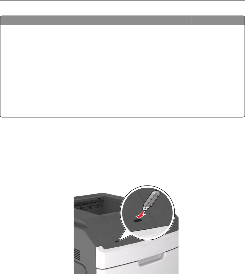 • A flash drive icon appears on the printer control panel and in the held jobs icon when a flash drive is