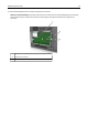 The following illustration shows the maximum number of optional finishers and trays that are supported by the printer.