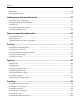 Contents 2 Contents Safety information.......................................................................................7 Learning about the printer...........................................................................9 Finding information about the printer......................................................................................................9 Selecting a location for the printer.......................................................................................................