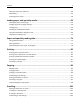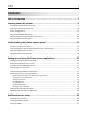 Contents 2 Contents Safety information.......................................................................................7 Learning about the printer...........................................................................9 Finding information about the printer......................................................................................................9 Selecting a location for the printer.......................................................................................................
