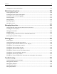 Contents 5 Finding printer security information.....................................................................................................219 Maintaining the printer............................................................................220 Cleaning the printer parts.....................................................................................................................220 Checking the status of parts and supplies..................................................................