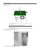 3 Holding the card by its sides, align the plastic pins (1) on the card with the holes (2) on the controller board.