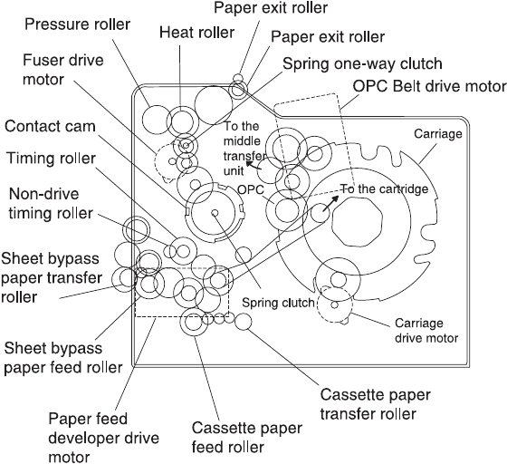 Note: The Drive Block consists of the paper feed drive block,