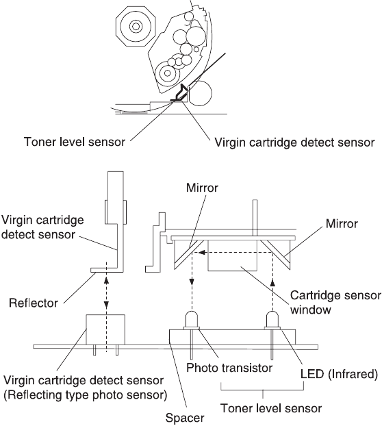 • Toner left in cartridge: Will be low “L” (toner sensor output at