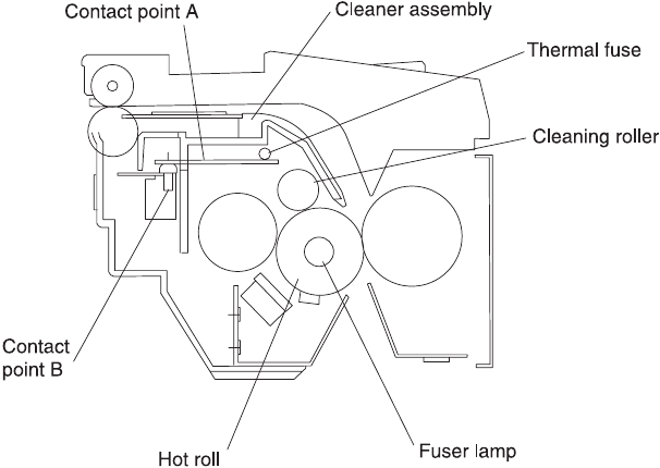 When the cleaner unit is placed inside the fuser unit, contact A