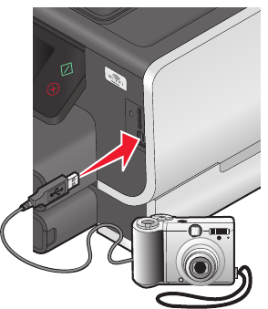 2 Schließen Sie das andere Kabelende an den PictBridge-Anschluss an der Vorderseite des Druckers an.