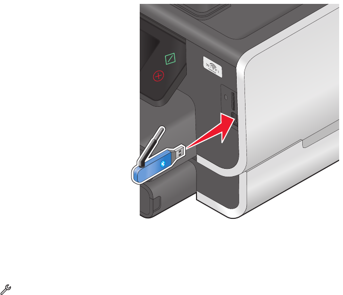 1 Stecken Sie einen USB-Bluetooth-Adapter in den USB-Anschluss auf der Vorderseite des Druckers.