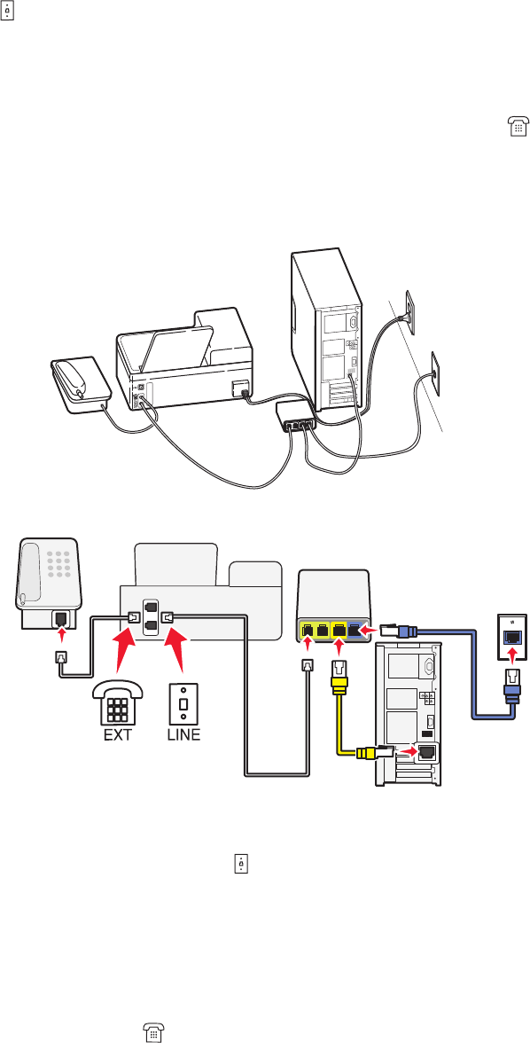 2 Verbinden Sie den -Anschluss an der Rückseite des Druckers über ein Telefonkabel mit dem Telefonanschluss