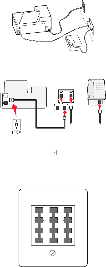 Schließen Sie das Kabel zwischen Telefonbuchse und -Anschluss des Druckers an.