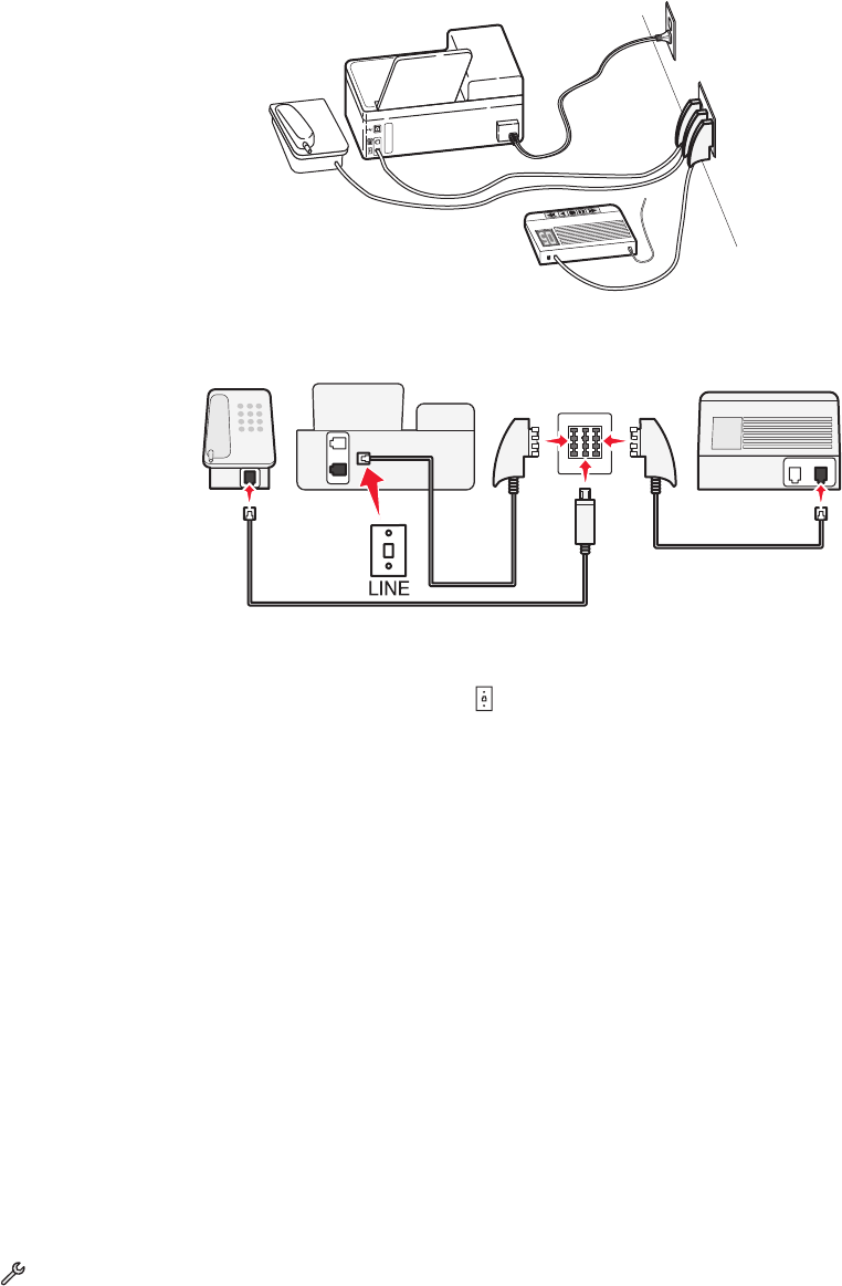3 Wenn Sie ein Telefon und einen Anrufbeantworter an dieselbe Telefonbuchse anschließen möchten, schließen