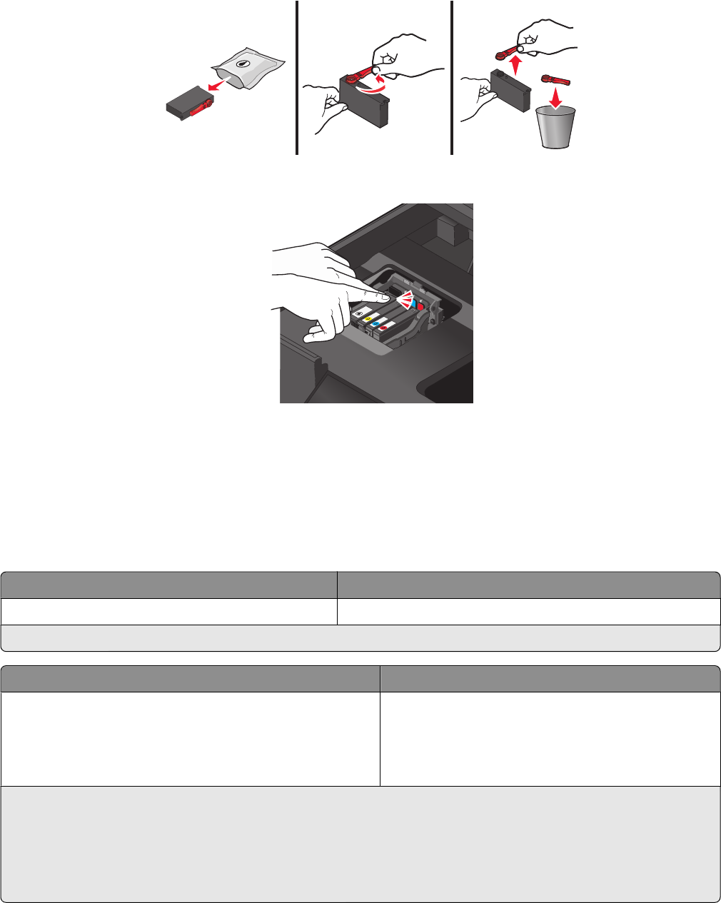 Note: Install the new ink cartridges immediately after removing the protective cap to avoid exposing the ink to air.