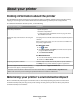 Contents Important safety information.........................................................2 About your printer.............................................................................5 Finding information about the printer...........................................................................................................................5 Minimizing your printer's environmental impact......................................................................................................