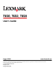 T650, T652, T654 User's Guide August 2008 www.lexmark.com Lexmark and Lexmark with diamond design are trademarks of Lexmark International, Inc., registered in the United States and/or other countries. All other trademarks are the property of their respective owners. © 2008 Lexmark International, Inc. All rights reserved.