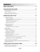 Contents Safety information.............................................................................9 Learning about the printer.............................................................11 Finding information about the printer........................................................................................................................11 Printer configurations......................................................................................................................................