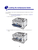 4 Insert the paper or specialty media, print side up, into the multipurpose feeder.
