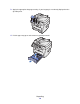 2 If more than one inch of your document has passed beneath the ADF roller, close the ADF top cover, and then proceed with the instructions for clearing a jam in “Roller misfeed” on page 72. If an inch or less is engaged in the ADF, gently pull the document out. 3 Close the ADF top cover, and then load the documents back into the ADF. Note: To prevent document jams, use the document glass, rather than the ADF, for thick, thin, or a mixed set of documents.