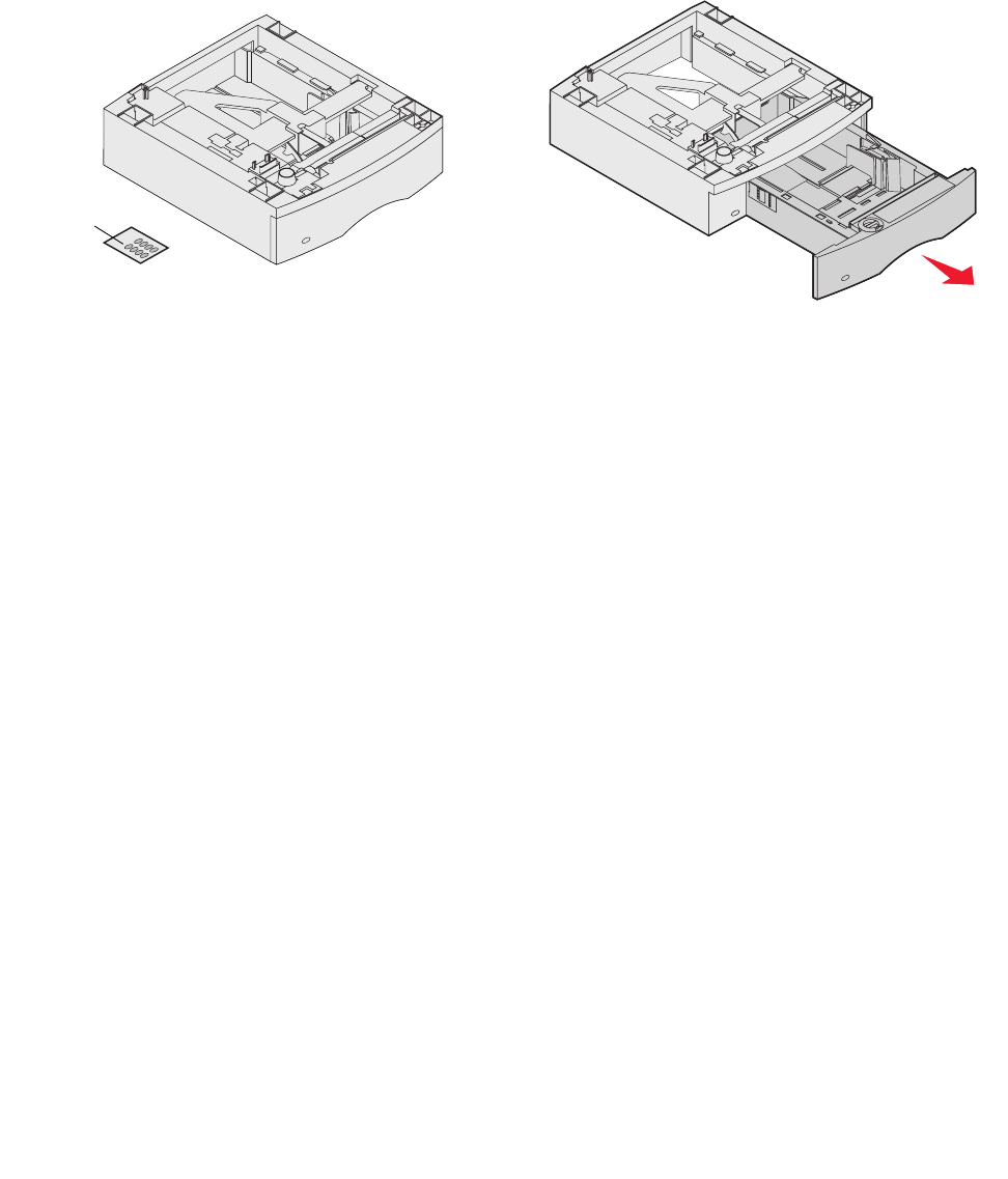 A drawer consists of a tray and a support unit. The 250-sheet drawer and the 500-sheet drawer are