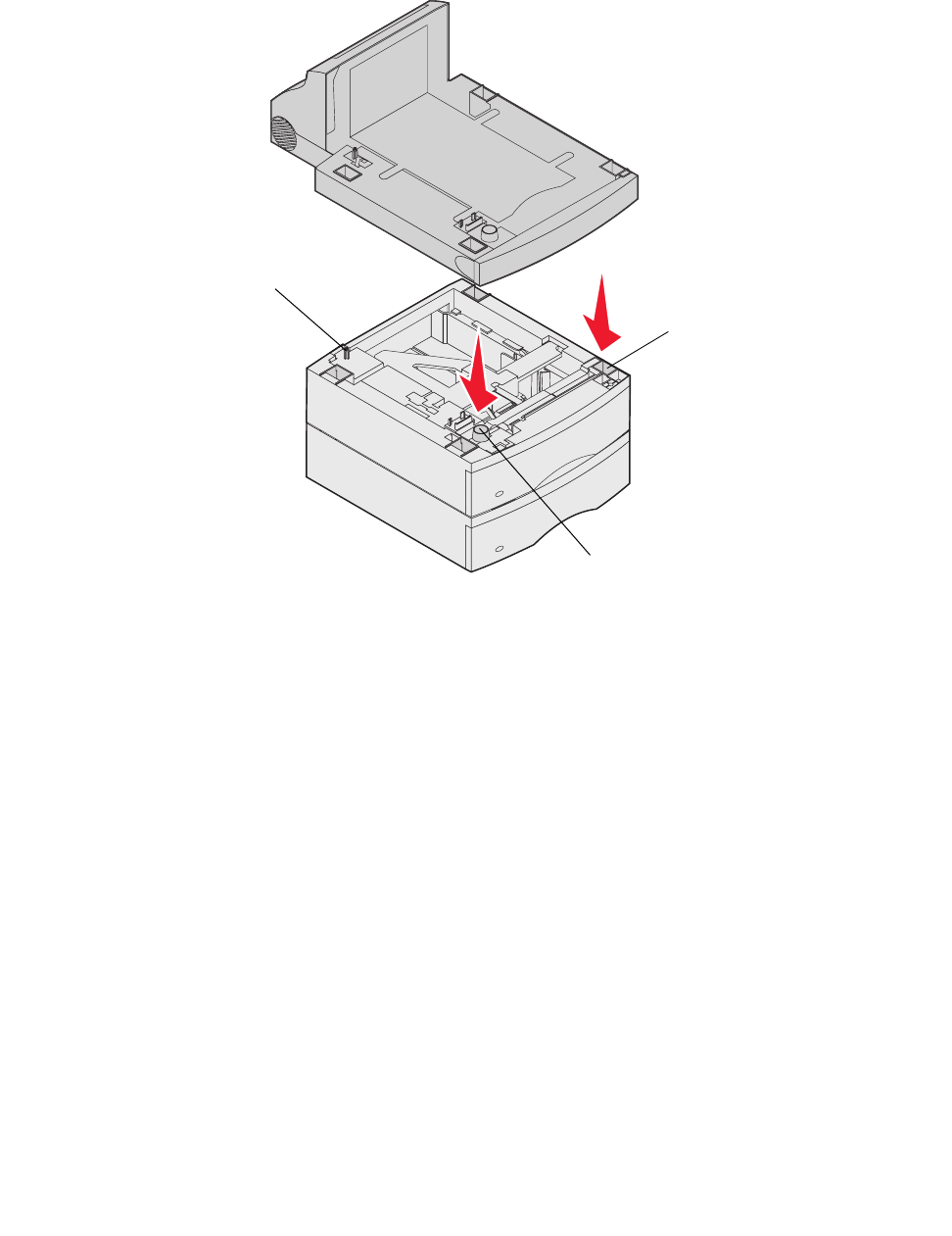 The tab, round peg, and square holes on top of any drawer help you position the duplex unit