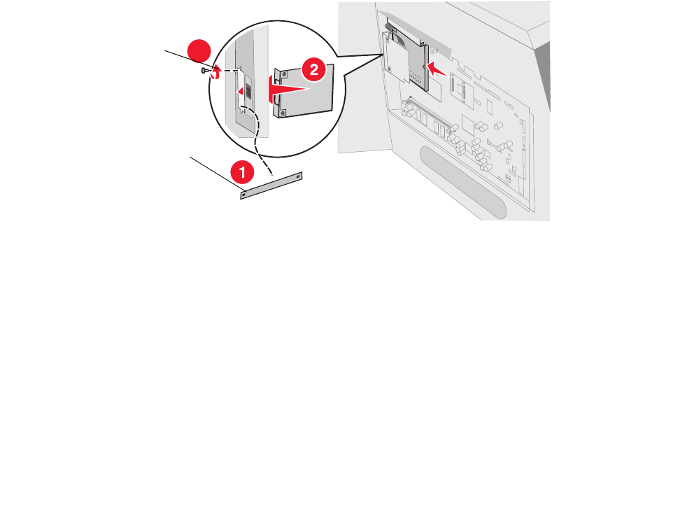 5 Insert the screw saved from the cover plate (or the extra screw shipped with the card).