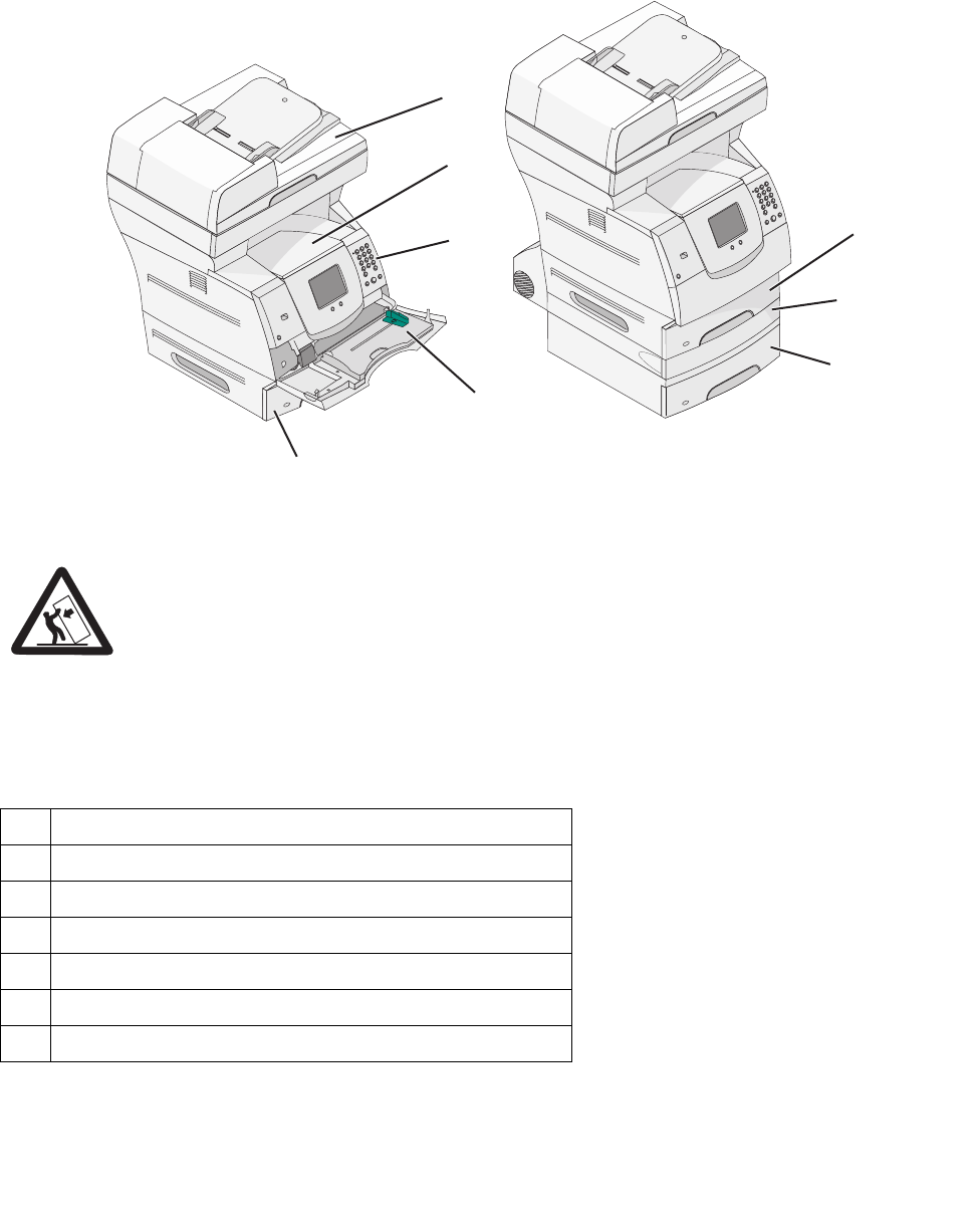 The following illustrations show a standard MFP and an MFP with a duplex unit and a 500-sheet