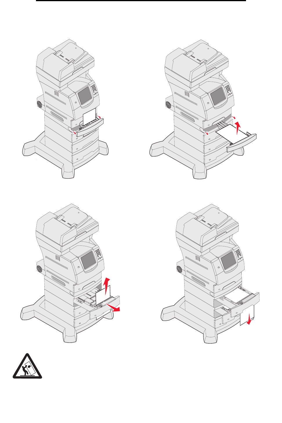 3 Open any optional trays beginning at the top, and remove any jammed media.