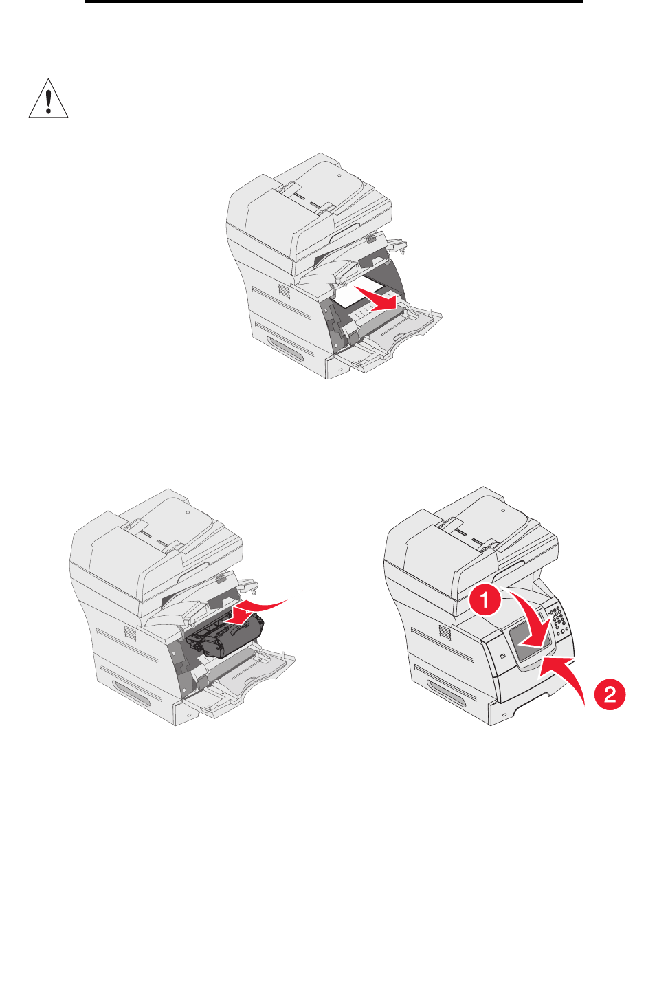 CAUTION: Do not use any pointed objects to remove the paper. This could cause personal injury or damage