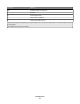 = Supported X = Not supported Printer model T650n/dn/dtn, T652n/dn/dtn, T654n/dn/dtn X651 MFP, X652 MFP, X654 MFP, X656 MFP, X658 MFP Message Status code Return string Intervention Required - 30113 56 Parallel Port Disabled 32001 Operation Failed Faxes on Disk X X 32001 Operation Failed Jobs on Disk X X 32002 52 Flash Full X X 32002 52 Not enough free space in flash memory for resources 32002 62 Disk full 32015 Disk Corrupted.